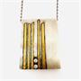 Dlouhý, originální náhrdelník od uznávaného návrháře Hanse Tischlera. Šperk tvoří řetízek o délce 70 cm a velký, odnímatelný závěs o rozměrech 4,6 x 3,6 cm. Vyrobeno ze stříbra ryzosti 925/1000, zdobeno zlatem, celková váha 35,73 g. Závěs zdobí dva brilianty váhy cca 0,17 ct precizně zasazené do lunety. Signováno. Perfektní stav.