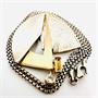 Originální stříbrný náhrdelník - půvabný delší řetízek s velkým, autorským závěsem. Ten zdobí kontrastní střídání povrchů, jak barevně, tak strukturou. Celkový charakter šperku je korunován fazetově broušeným citrínem a kubickou zirkonií s vysokou brilancí. Stříbro ryzosti 925/1000, celková váha 19,10 g. Délka řetízku 46,5 cm. Autorská, ryzostní a puncovní značka. Perfektní stav.