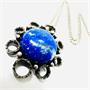 Originální stříbrný náhrdelník s odnímatelným závěsem. Dominantou šperku je sytě zbarvený lápis lazuli s výraznou kresbou. Závěs i masivní řetízek jsou vyrobeny ze stříbra ryzosti 835/1000. Celková váha 16,42 g. Délka řetízku 50 cm. Rozměry závěsu cca 3,8 x 3 cm. Nevšední, autorský šperk ve výborném stavu.