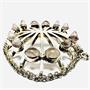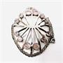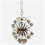 Stříbrný náhrdelník s velmi nevšedním odnímatelným závěsem. Šperk byl vyroben ze stříbra ryzosti 830/1000. Zdobí jej 12 růženínů, hladkého kulatého brusu kabošon, 8 z nich je kónicky vybroušených. Závěs je větší, rozměry 7 x 4,5 cm. Řetízek délkám 48 cm byl vyroben ze stříbra ryzosti 900/1000. Nevšední, designový šperk v perfektním stavu. Hmotnost 31,51 g.