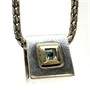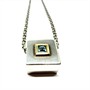 Originální, nadčasový stříbrný náhrdelník - řetízek s odnímatelným závěsem ve tvaru kostky. Šperk byl vyroben ze stříbra sterlingové ryzosti (925/1000), o celkové váze 9,16 g. Střed závěsu zdobí ocelově modrý topaz orámovaný zlatem. Délka řetízku 45 cm. Profesionálně vyleštěno, výborný stav.