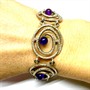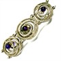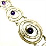Originální, článkový náramek nadčasového designu. Náramek byl zhotoven ze stříbra ryzosti 935/1000, o celkové váze 35,99 g. Každý z článků zdobí kulička ametystu, tmavě fialového odstínu. Délka 18 cm, šířka 2,2 cm. Perfektní stav.