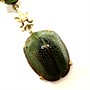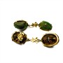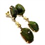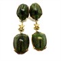 Originální, zlaté náušnice se zapínáním na puzetu. Náušnice mimo zlatých částí zdobí osazení vrubounem královským - scarabeem. Tento mýtický brouk symbolizuje znovuzrození a byl velmi oblíbený už ve starověkém Egyptě. Zlato ryzosti 585/1000, dříky zlato ryzosti 750/1000. Toto zpracování náušnic bylo velmi populární již v let 1890 - 1900. Celková váha 4,42 g. Délka 4 cm. Perfektní stav.