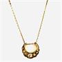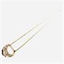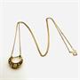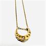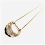 Půvabný, jemný, originální zlatý náhrdelník. Ten zdobí neodnímatelný závěs - půlměsíc zdobený sedmi diamantovými routami různých velikostí. Zlato ryzosti 585/1000, celková váha 2,43 g. Délka 45 cm. Velmi dobrý stav.