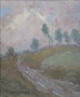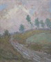 Olej na kartonu 30,5 cm x 26,5 cm. Signováno vlevo dole. Autor: Otakar Hůrka (1889-1966). Olejomalba zachycující krajinu s cestou mezi stromy a loukami vsakující vláhu po dešti. Nově adjustováno v rámu se sklem. Čechy 1915 - 1925. Celkový rozměr s rámem 33,5 cm x 29,5 cm.