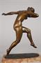 Expresivní bronzová plastika tanečnice s pěknou patinou na podstavci z leštěného mramoru. Výška 32, s mramorovým podstavcem 34 cm, signováno. Příhodný název by také mohl být Krása a kouzlo pohybu. Vše v prvotřídním stavu.