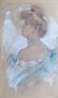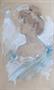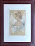 Akvarel, kvaš a tužka na papíru 38 cm x 23,5 cm. Období a styl: francouzská secese. Signováno vpravo s datací 1907. Autor: Otto Peters (1882-1952) byl malířem Pražského hradu a portrétoval např. T.G. Masaryka, Karla Kramáře a Eduarda Beneše. Portrét mladé ženy z profilu v pařížském secesním stylu. Burgundsky červený leštěný rám se zelenými reliéfními linkami a sklem. Čechy, Praha, rok 1907. Celkový rozměr s rámem, paspartou a sklem 68 cm x 52 cm.