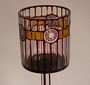 Čiré sklo, vrstvené červeně, geometricky probrušované, žlutě lazurované a malované emailem. Výška 20,5 cm, průměr kupy 6,2 cm, průměr roztočení podstavce 8, 4 cm. Autor návrhu Otto Prutscher (Wien 7. 4. 1880 - 15. 2. 1949 Wien), pracoval pro firmu E. Bakalowits Söhne, Wien. Provedení sklárna Meyr's Neffe, Adolfov, kol 1907-1908.