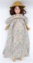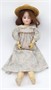 Neglazovaný ručně malovaný porcelán (biskvit), dřevo, sklo, přírodní vlasy, tkanina, kov. Výrobce: Aich Porzellanfabrik založená v roce 1848 v Doubí u Karlových Varů, později po roce 1918 působící na trhu pod názvem Aich, Menzel & Company. Forma na panenky Menzel již z roku 1904, ale vyráběna až kolem roku 1918. Velikost 10. Velmi vysoká panenka s porcelánovou hlavičkou, ručně malovaným obličejem a nehty, s přírodními tmavými vlasy a dřevěným tělem s rukama i nohama na kloub. Oděná v dobové šaty s krajkovým límečkem a s nepůvodním řetízkovým náramkem na pravém zápěstí. Značeno: na temeni hlavy pod vlasy A & M, Made in Austria, 1904, 10. Čechy, Doubí u Karlových Varů, kolem roku 1918. Výška 70 cm. Velikost 10.
