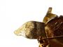Stará brož ze silně zlaceného obecného kovu s barevnými smalty, značeno těžko čitelně zezadu (viz foto), stáří odhaduji na druhou třetinu 20. století. Délka 7,3 cm, dobrý stav bez poškození, běžné známky stáří a používání.