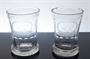 Více jak 150 let staré bohatě broušené a ryté sklenice z čirého skla pocházející z období Biedermeier. Široké řezané patky, drobné fazetky a jemný rytý florální dekor po celé ploše s monogramem H K. Vespod broušená čočka po heftu od sklářské píšťaly. Půvabná práce sklářů z první poloviny 19. století. Dobrý stav, pár nepatrných oťuků kolem hrdla, rozměr v. 11,5cm, prům. 8,5cm