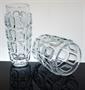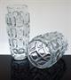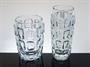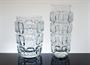 Pár váz z autorského, čirého, lisovaného skla ze souboru s hlubokým plastickým reliéfem nepravidelných organických tvarů. Autorem návrhu z roku 1962 je sklářský výtvarník František VÍZNER (*1936 +2011). Provedla sklárna Libochovice součást koncernu SKLO-UNION. Dobrý stav, rozměr - v. 23cm, prům. 10cm a v. 17,5cm, prům. 13cm
