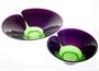 Pár mís v provedených v krásné barevné kombinaci ametystového skla a jádrem v odstínu Oceanit. Sklo vyrobené technikou odstředivého lití, na vnější straně s jemným spirálovitým rastrováním. Autorem návrhu z roku 1985 je sklářský výtvarník, malíř a pedagog Jiří ŠUHÁJEK (*1943), pro sklárnu Crystalex Nový Bor. Dobrý stav, rozměr - prům. 29 a 19cm, v. 9cm