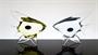 Skleněné figurální plastiky - pár ryb Skaláry z čirého a citrínového skla, které mají dochované původní nálepky. Drobná dekorativní práce z hutního skla, autorem návrhu je profesor Miloslav JANKŮ (*1916 +1994) malíř, pedagog a sklářský výtvarník. Provedly sklárny Železnobrodské sklo po roce 1993, dobrý stav, rozměr v. 13 x 14 x 6cm