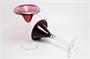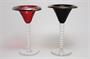 Pár stylových skleniček z počátku minulého století na nožce, která připomíná perličkový dekor kávových souborů Pavla Janáka. Kalíšky zajímavého otevřeného tvaru jsou z rubínového a rosalínového skla zušlechtěného perleťovou lazurou. Pravděpodobně provedly sklárny v severních Čechách. Dobrý stav, rozměr v. 17cm, prům. 10cm