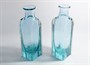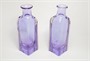 Pár váz foukaných do formy z masivního hutního skla v odstínu Alexandrit (Neodymové sklo - mění barvu podle spektra osvětlení, viz foto). Autorem váz s úzkým hrdlem na jednu květinu a s nálepy z čirého skla je sklářský výtvarník Ladislav OLIVA (*1933), provedly sklárny Železnobrodské sklo po roce 1980. Dobrý stav, rozměr - v. 23 x 6,5 x 6,5cm