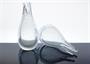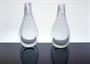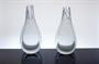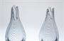 Pár váziček s organicky zakončeným hrdlem na jeden květ z hutního skla se zatavenou skelnou tkaninou s obchodním označením "HARRTIL". Ve skle zatavené vlákno byla době technologická finesa a velmi jemný dekor také imituje sklo z italských Benátek. Autorem je sklářský výtvarník Rudolf SCHWEDLER ( *1896 + 1981 ) a později byl koncept tohoto souboru připsán Milanu METELÁKOVI ( *1928 +1993 ). Provedla sklárna Harrachov po roce 1955. Dobrý stav, rozměr - v. 18cm, prům. 8cm