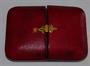 Kazeta potažená kůži o rozměru 16 x 11 cm v zavřeném stavu, vzadu značeno Frazer+Haws from Garrards 31 Regent St. Picadilly.