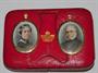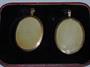 Rozměr miniatur 7,5 x 5 cm, oboustranně zaskleno, rámeček kov (pozlaceno? zlato?) bez značení, puncu atd.