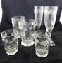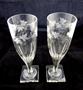 Bezbarvé broušené sklo. Zdobené v horní části broušeným věnečkem s motivem stonků vinné révy s úponky, listy a hrozny. V dolní části klenuté fazety. Čtyři hraněné patky s fazetami. Dvě patky čtvercového tvaru. Střední Evropa 1860 - 1890. Výška 17,5 cm, 11,5 cm, 8,5 cm.