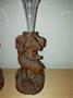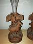 Párové vázy kombinace vyřezávané dřevo a broušené sklo. Vzhledem ke stáří drovme defekty. Původní stav viz. Foto. Výška 22cm