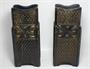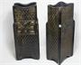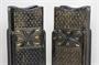 Velké párové kameninové vázy z počátku minulého století s geometrickým ornamentem stylově se nacházející na pomezí končící geometrické secese a nově rodícího se kubismu. Reliéfní dekor s barevnou kombinací černá mat a zlatá, signováno J M - manufaktura Johann MARESCH Ústí nad Labem. Dobrý stav, rozměr - v. 29 x 12,5 x 9cm