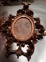 Párové vyřezávané rámečky. Rozměr výška 27cm, šířka 20cm. Původní nálezový stav. Zlacení zlato na lesk. Drobne defekty.