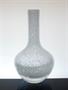 Designová váza z hutního pěnového skla tzv. "Pulegoso glas", které je přejímané masivní čirou sklovinou a v té u dna vázy vyniká efekt mnoha jemných bublinek. Autorem je italský umělec a sklářský výtvarník Archimede SEGUSO ( *1909 +1999 ) a provedly krystalerie na ostrově Murano u italských Benátek v 70-80tých letech. Dobrý stav, rozměr - v. 23cm, prům. 13cm