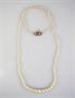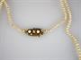 náhrdelník ze sladkovodních perel různé velikosti, art deco zlatý uzávěr s diamantem briliantového brusu o hmotnosti cca 0,05 ct a čtyřmi diamantovými routami, Au btto 4,95 g/585/1000, střední Evropa, kolem r. 1930; délka 51 cm, atest Puncovního úřadu