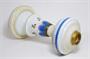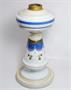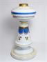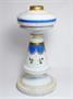Překrásná spodní část petrolejové lampy z opálového skla s velice jemným smaltem malovaným dekorem s florálním motivem. Dále je lampa zušlechtěná aplikací zlatých a modrých proužků, vespod je heft od sklářské píšťaly. Práce z druhé poloviny 19. století, pravděpodobně dílo některé sklárny na Novoborsku. Dobrý stav, rozměr - v. 30cm, prům. 15cm