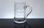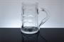 Staré nápojové sklo - pivní holba, půllitr z poloviny 19. století, celoplošně broušené čiré sklo s bohatým a hlubokým dekorem. Pravidelný ornament olivek a vespod jemně řezaná hvězdice, na masivním uchu je broušená ploška a zářezy, jako příprava na montáž víka. Sklo z období Biedermeieru pocházející z bohatší domácnosti. Krásná práce sklářů ze severních Čech, dobrý stav, rozměr v. 15cm, š. i s uchem 15cm