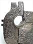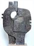 těžká terakotová plastika z doby socialismu, červená pálená hlína se zelenonačervenalou polychromií, autor neznámý, výška 45 cm, drobné oděrky