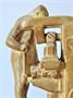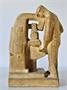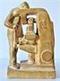 plastika dělníka u stroje z pálené hlíny, výška 22 cm, bez signatury, nepoškozeno