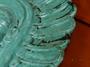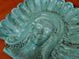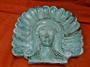 Nevídaná plastika na zeď, indián, glazovaná terakota, tyrkysová barva, 31,5-30-5,5cm, váha cca 2,5Kg, pár drobných oťuků a odřenin, stav viz foto.