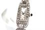 Platinové dámské hodinky s diamanty. Platina 950/1000. Zapínání na pásku - obecný kov. Přírodní diamanty, kvalita SI1 - I1, barva H - J, celková váha 1,4 ct. Váha hodinek: 13,25 g. Rozměr ciferníku: 2,5 cm x 1,1 cm. Osvědčení puncovního úřadu.