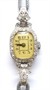 Platinové dámské hodinky s diamanty. Platina 950/1000. Pásek (řemínek) - obecný kov. Přírodní diamanty, kvalita SI1 - I1, barva H - J, celková váha 0,65 ct. Váha hodinek: 12,5 g. Rozměr ciferníku: 1,5 cm x 1,1 cm. Délka hodinek (obvod): 16,5 cm.