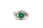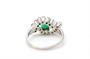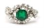 Platinový prsten s diamanty a smaragdem. Platina 850/1000. Přírodní smaragd 0,75 ct. Přírodní diamanty, kvalita SI1 - SI2, barva G - I, celková váha 0,6 ct. Váha prstenu: 4,33 g. Velikost prstenu: 49.