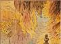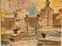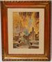 Komorní interiér zámeckého parku, mistrovsky ztvárněná podzimní atmosféra. Podmanivá veduta s jezírkem, či kašnou, obklopenou stromy z kterých se na vodní hladinu snáší padající listí. Kombinovaná technika na papíře v dekorativním zlatavém rámu, práce z roku 1953 od malíře - Otto KUBÁT ( *1913 Semily ), studoval na VŠUP u A. Hofbauera. Sign. a dat. p.d. v dobrém stavu. Celkový rozměr 47 x 38cm, rozměr díla 29 x 20cm