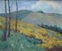 Olej na plátně 50 cm x 60 cm. Signováno nečitelně vpravo dole. Pohled na horské stráně za polojasného podzimního dne. Zlatý patinovaný rám se zelenými linkami, místy mírně poškozený. Československo 1918 - 1938. Celkový rozměr s rámem 66,5 cm x 76,5 cm.