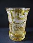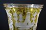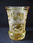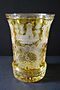 Sklo čiré přejímané žlutou lazurou.Masivní