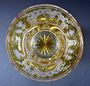 broušeným vzorem z různých námětů-architektury,zvěře a rokokových mušlí stylizovaných.Horní okraj zabrušovaný.