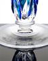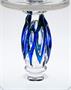 Moderní hutní sklo - masivní čirá sklenice zušlechtěná barevnými nálepy v odstínu kobaltová modř a zelená. Autorem je dnes již mezinárodně uznávaný výtvarník a sklářský mistr Jiří PAČINEK (*1972 Litoměřice), provedení sklárna Lindava, vespod sign. a dat. 2011. Dobrý stav, rozměr - v. 18cm, prům. 11,5cm