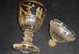 Čiré sklo, brus do fazet, mimořádně bohatá malba barevnými smalty a zlacení - svatební výjevy - perfektní stav !!