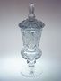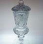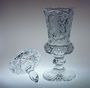 Solitérní větší pohár - váza s víkem z ručně broušeného křišťálového skla s jemným geometrickým ornamentem a hlubokou rytinou mladé dámy. Pohár pochází z první poloviny minulého století, luxusní práce českých sklářů. Dobrý stav, rozměr - v. 36cm, prům. 12cm, hmot. 2,1kg