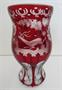 Pohár z hrubého ručne broušeného skla číre barvy, přejímaný rubínovou barvou.Vzor s ornamenty, jelenem a ptákem.Krásná umělecká práce.Robustní kus do sbírky.Výborně zachovalý stav bez poškození.Vyrobeno v Čechách v 2/2 20. století ve sklárne Egermann. Výška: 16 cm Pruměr nahoře: 8,3 cm