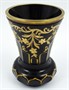 Bezbarvé silnostěnné ručně broušené sklo vrstvené kobaltovým, rubínovým a mléčným sklem. V biedermeierovém stylu. Ručně broušený pohár z bezbarvého silnostěnného skla velmi interesantní tmavě rubínové barevnosti zdobený zlacenými festony a vlnkami. Československo, minulé století. Výška 14 cm.