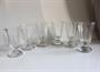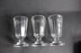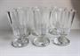 Číše z čirého skla, broušené do deseti hran, s řezaným monogramem BŠ, na kulaté noze. Kol 1910. Šest kusů. Výška 13,8 cm, šířka horního okraje7 cm.
