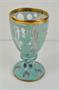 Skleněný malovaný vrstvený pohár, Čechy kolem roku 1840, intaktní stav, výška 14,5 cm.