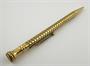 Obecný kov, zlacení žluté 14 karátové zlato. Ryzost 585/1000. Celková hmotnost 12,75 g. Elegantní tužka s gravírovaným povrchem s motivem vlnovek a na uzávěru s věnečkem. Značeno: 14K GOLD FILLED. Evropa 1920 - 1940. Délka 130 mm.