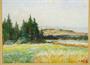 Pastózní olejomalba, scenérie zrajícího obilného políčka s motivem hornaté krajiny na pozadí, autor působivě zachytil letní atmosféru členité krajinky, malíř Petr MATÝSEK ( *1885 ) žák Akademie der bildenden Künste ve Vídni, tvořil také šest let v Paříži a podnikal studijní cesty do jiných evropských zemí. Na zadní straně popisek s názvem díla, sign. p.d. Olejomalba na kartonu paspartovaná v krásném původním rámu pod sklem. Dobrý stav, celkový rozměr 48 x 42cm, rozměr díla 30 x 24cm